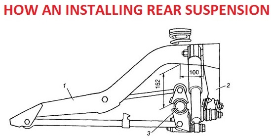 Installing rear suspension: 1 — body spar; 2 — bracket of the transverse rod; 3 — rear axle beam.
