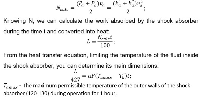 Use the calculated power N, which corresponds to the speed of the shock absorber piston, and the last figure characterizes a very intense mode when choosing the main dimensions of the shock absorber. The power absorbed by the shock absorber can be calculated using the formula:
